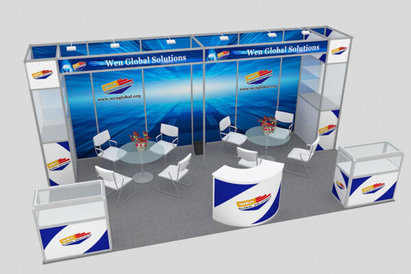 The price includes display booth and furniture transportation, material handling, installation labor, dismantling labor, display booth disposal costs.