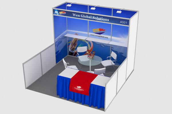 The price includes display booth and furniture transportation, material handling, installation labor, dismantling labor, display booth disposal costs.